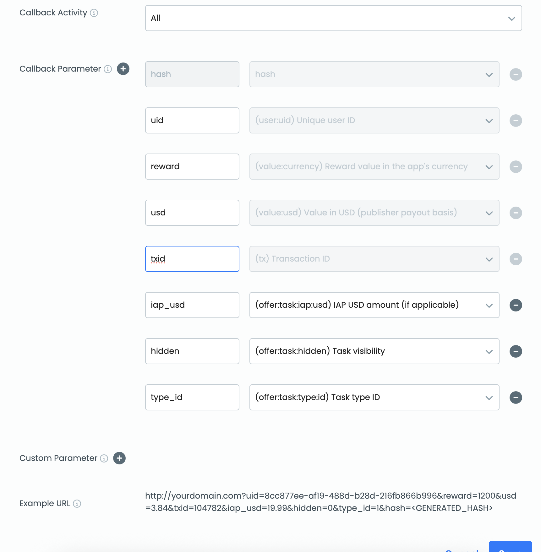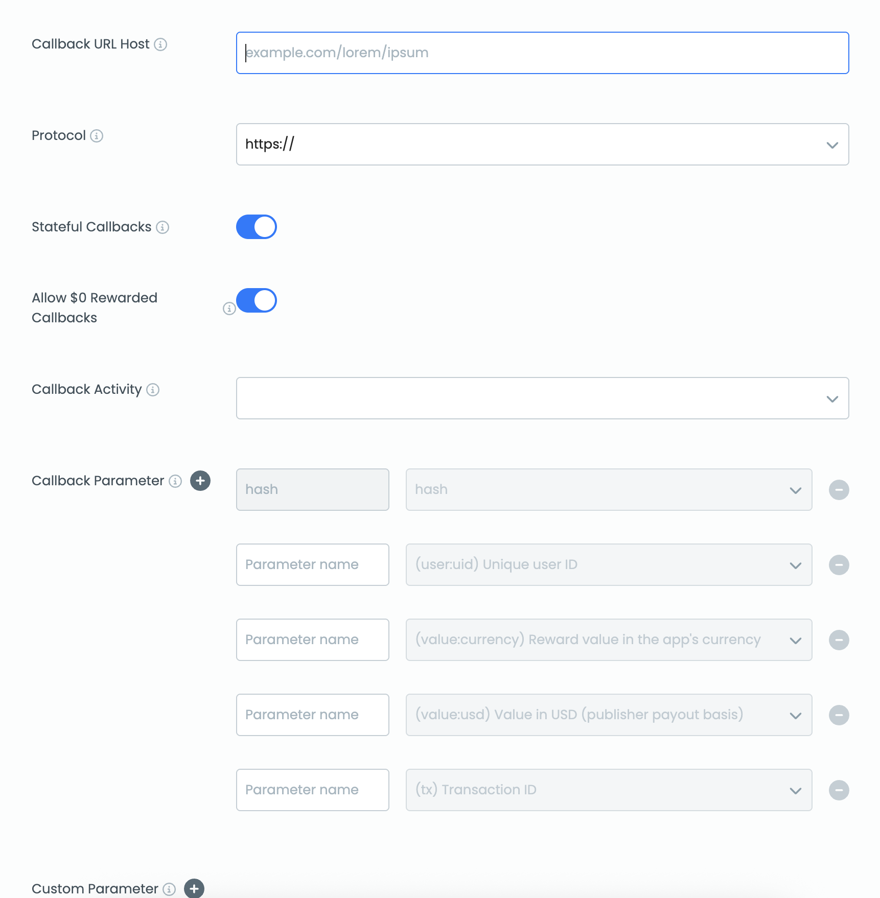 You can use the Offer Callback field when you want to receive only offer-related postbacks or if you prefer to handle offers through a separate endpoint rather than using the standard Reward Callback field.